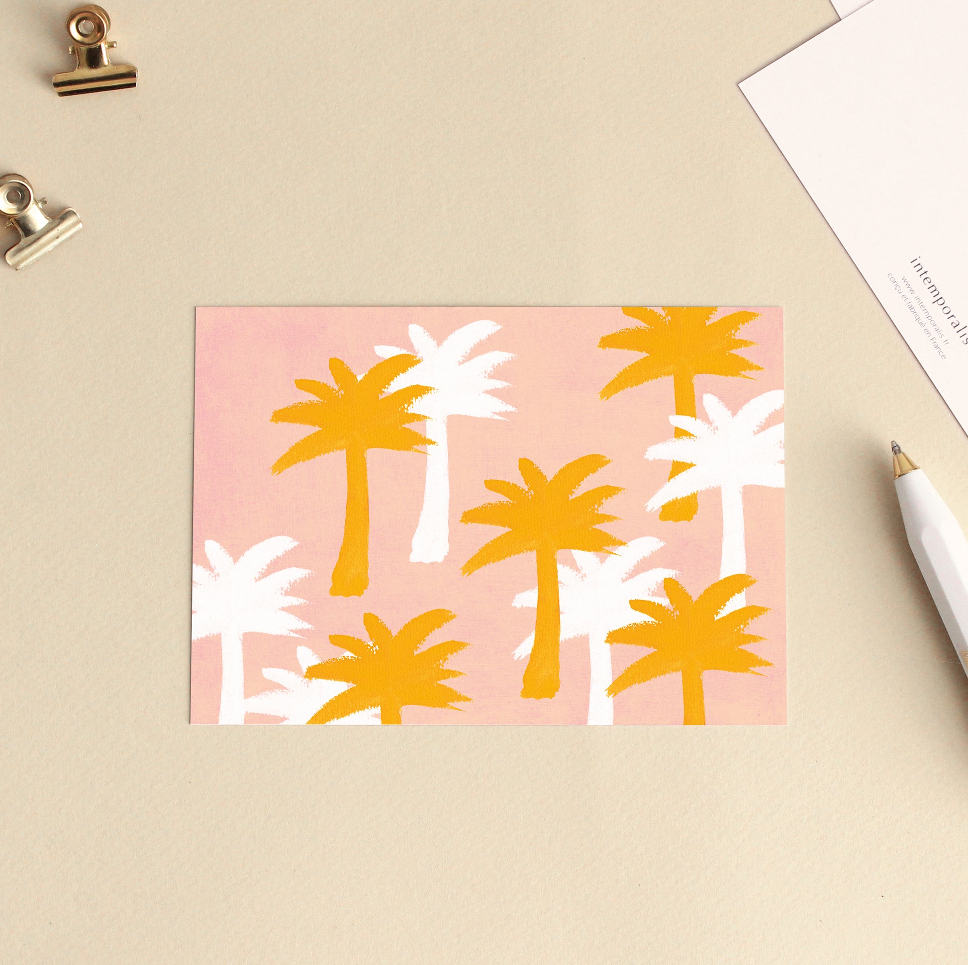 Carte d'art Motif Palmiers - Rose Jaune