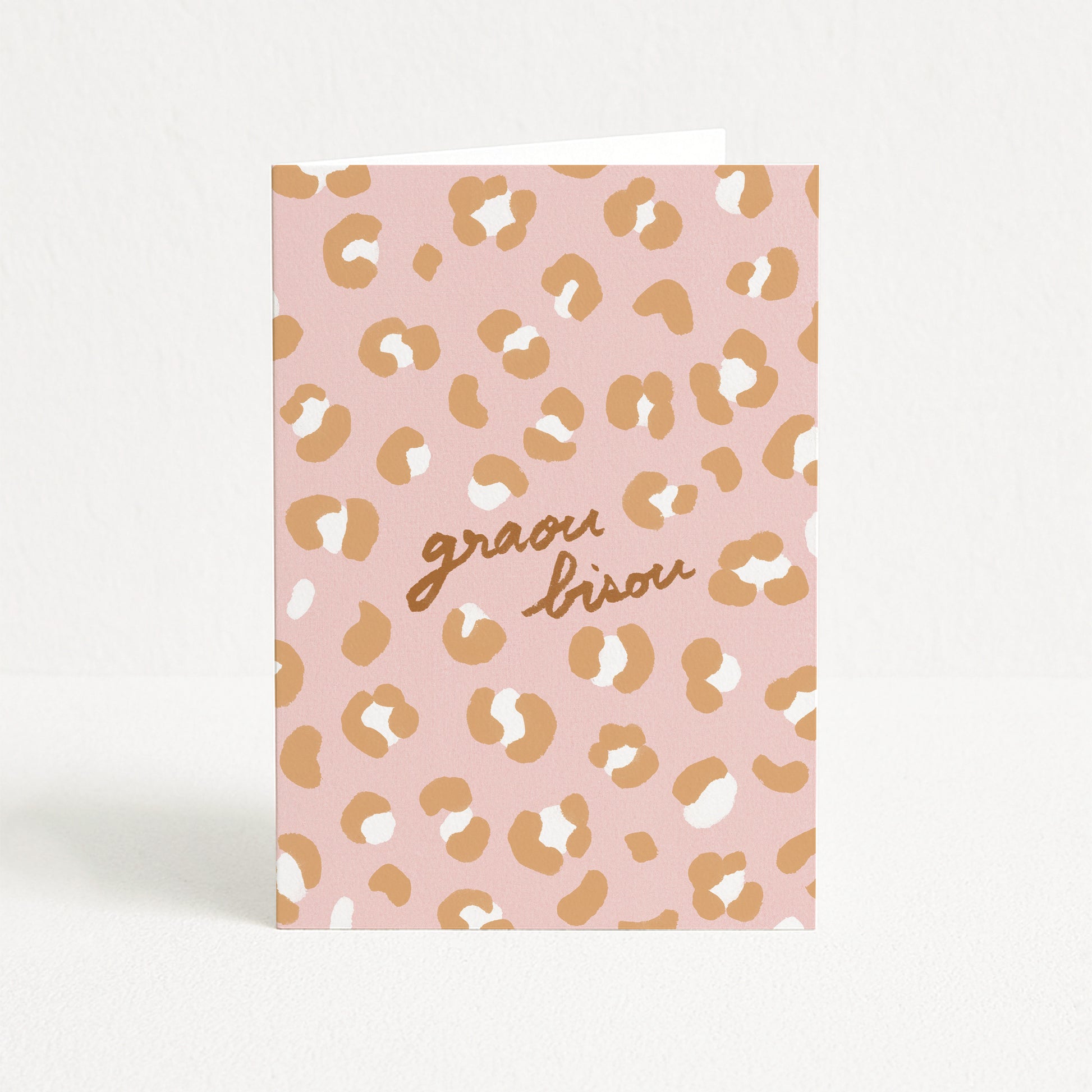 Carte de vœux Léopard "Graou bisou" - Rose pastel